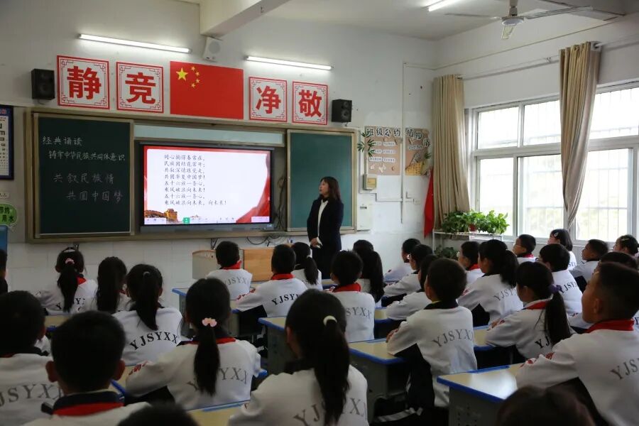 “通过经典诵读,我明白了中华民族是一个大家庭,56个民族一家亲,我们要互帮互助,团结一致!”诵读结束后,五(5)班学生尹康宇的分享道出了同学们的心声。这生动的一幕,正是该校以“八进八融合”为抓手,推动铸牢中华民族共同体意识教育落地生根的缩影。