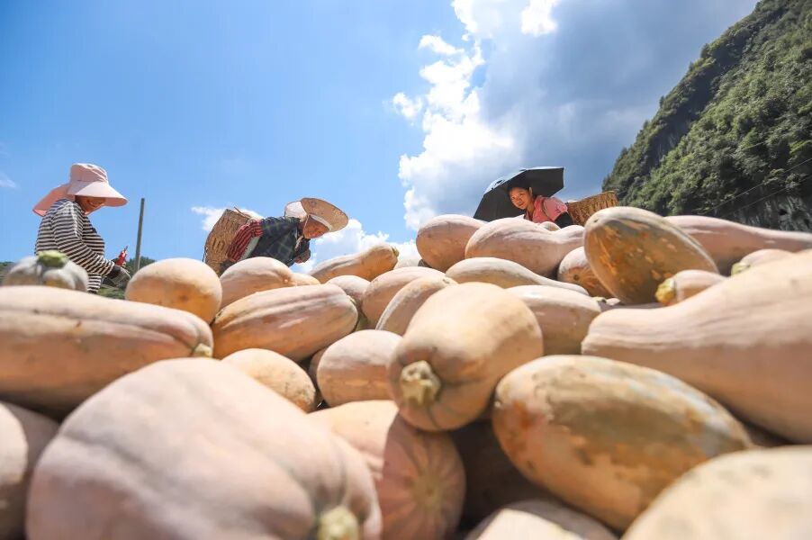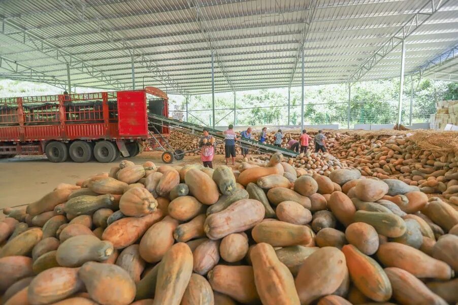 木黄镇新民坝区的蜜本南瓜迎来一场丰收“接力赛”。