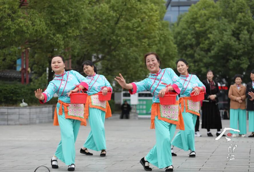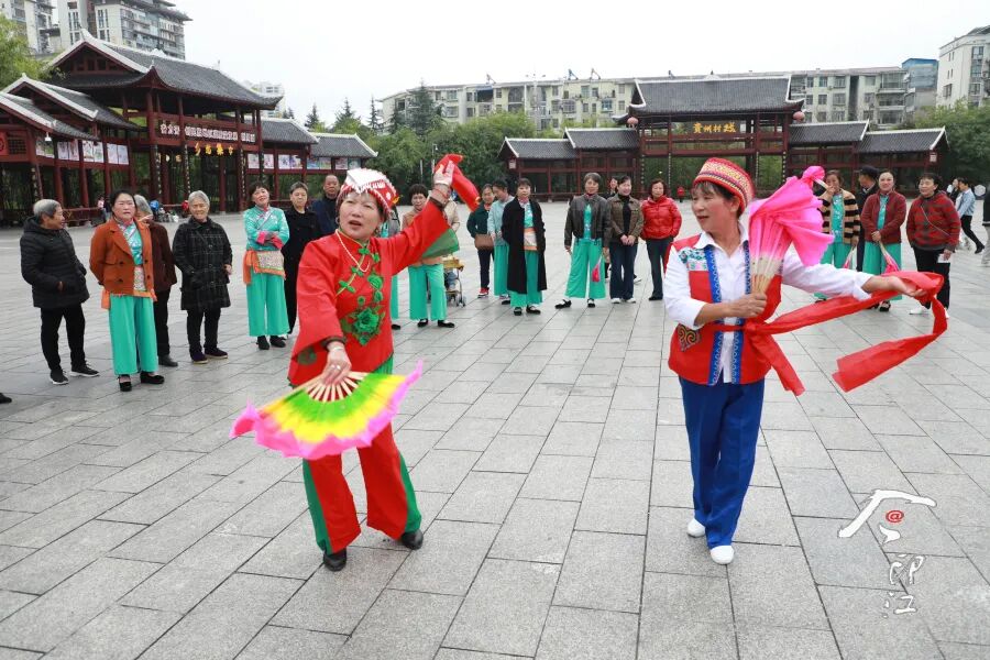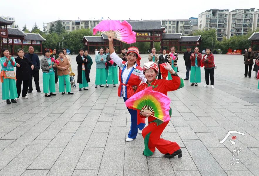印江花灯协会健身队在文昌公园表演节目,乐享美好时光。左禹华 摄
