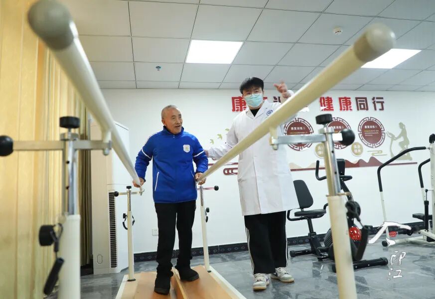 印江颐养服务中心护理员引导老人做康复训练。左禹华 摄