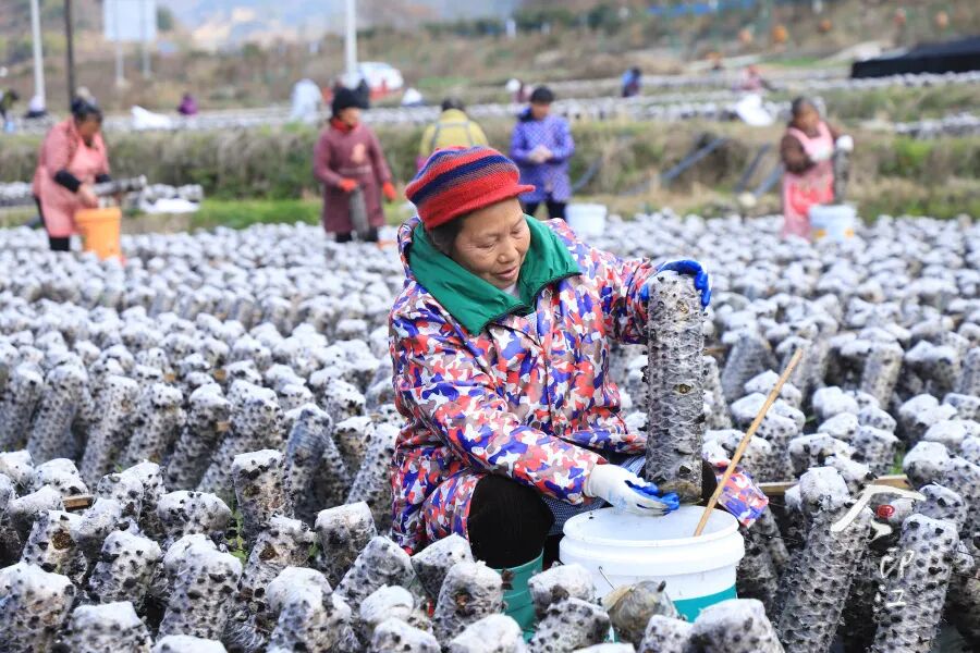 老人在印江合水木耳基地采收黑木耳。左禹华 摄